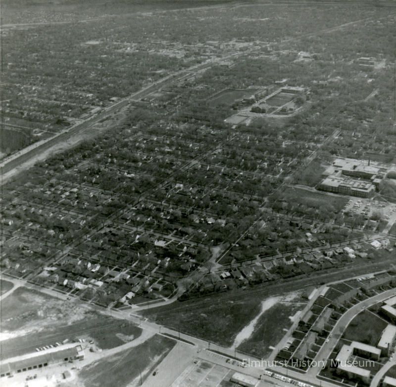 Aerial view of College View Terrace Subdivision, to the west of Elmhurst College, looking northeastPhotograph Details