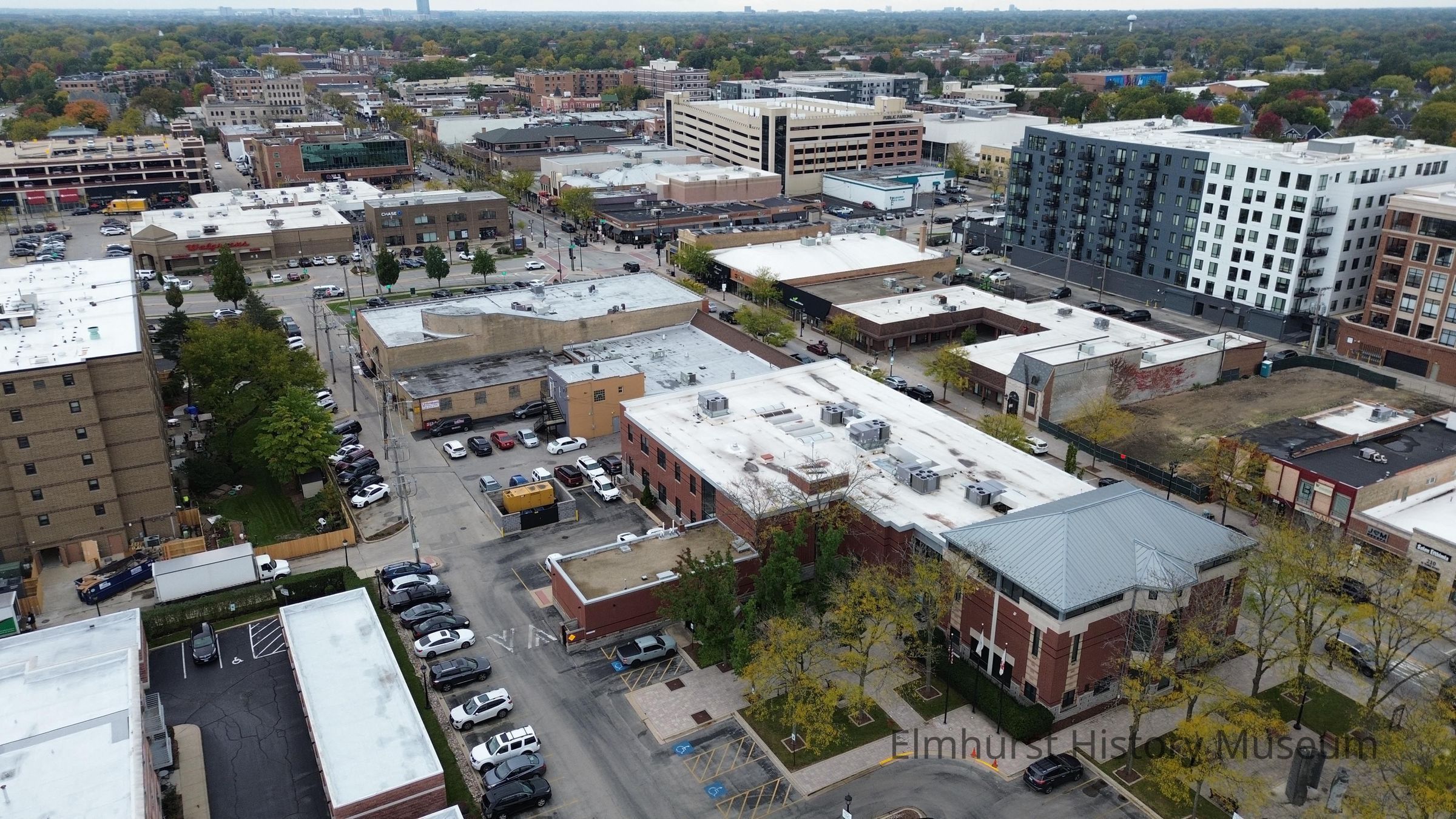 View of Elmhurst's central business district, looking southwest. Elmhurst City Hall at 209 N. York Street is in the foregroud.Photograph Details