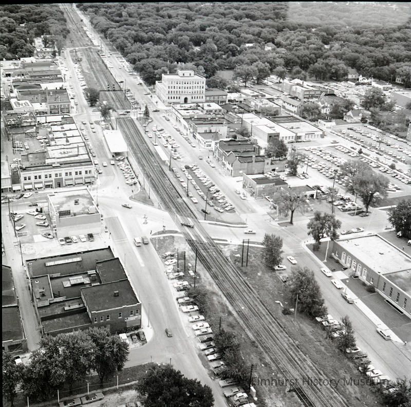 Aerial View of the Addison Avenue railroad crossing in downtown ElmhurstPhotograph Details