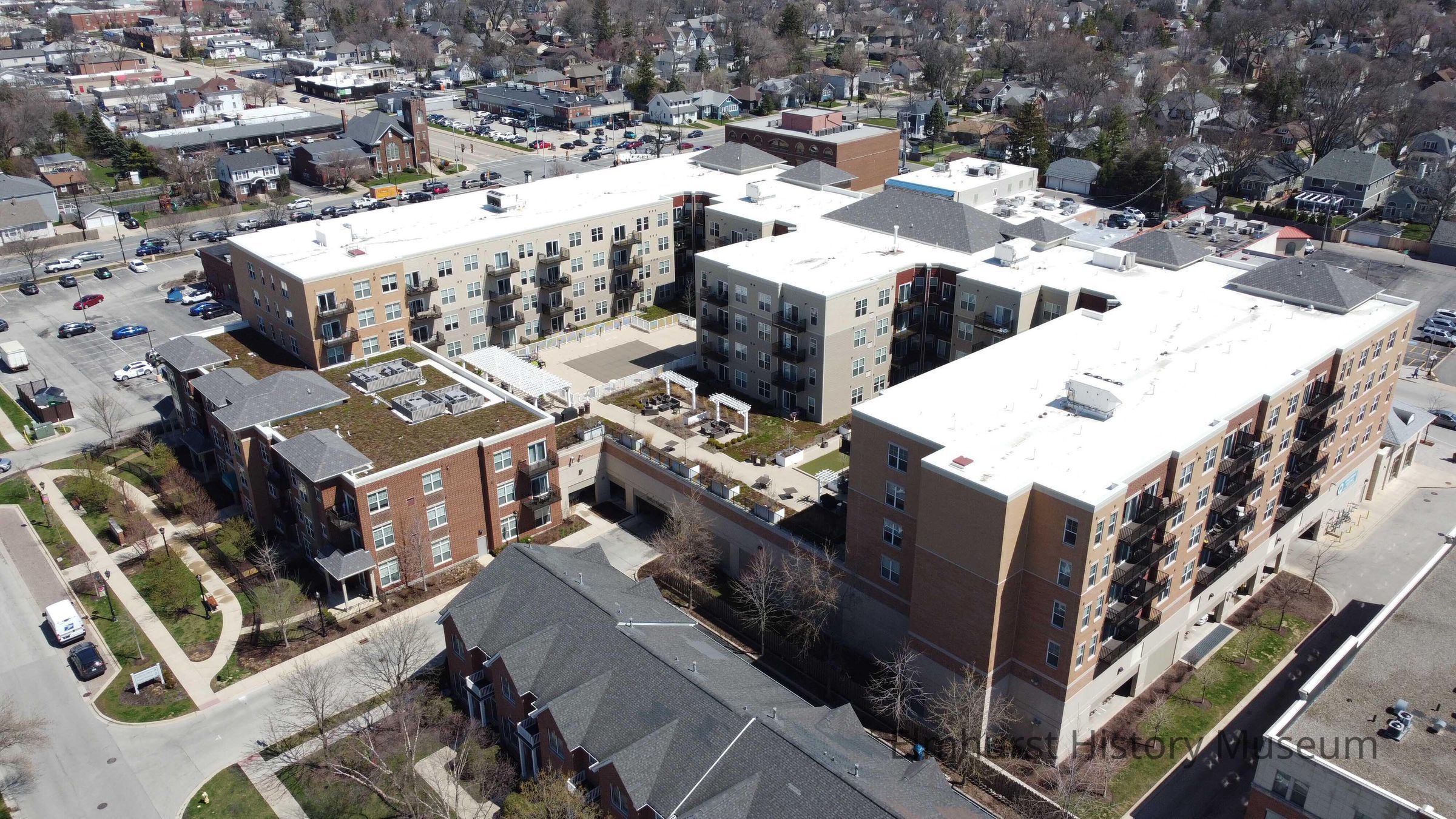Aerial view of Elmhurst 255 Downtown Apartments at 255 N. Addison Avenue, looking northeast.Photograph Details