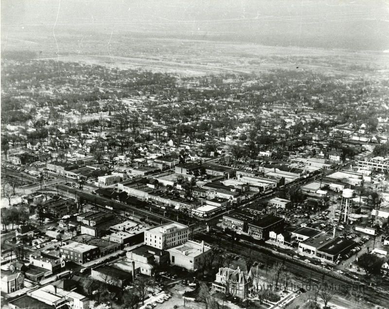 Aerial view of Elmhurst, looking northwest.