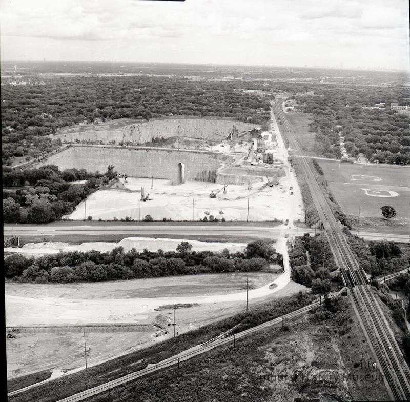 Aerial View of the Elmhurst-Chicago Stone Quarry, looking east from Route 83.Photograph Details