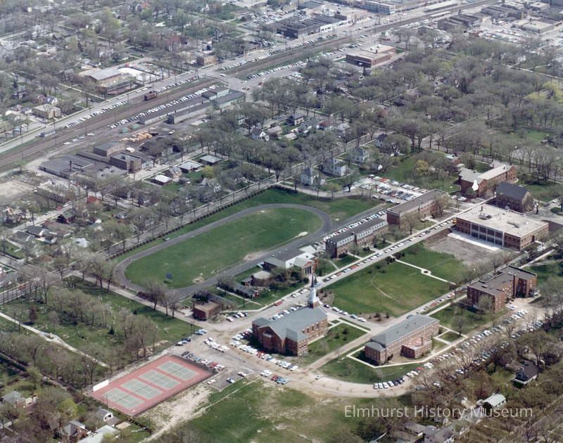 Aerial view of Elmhurst College, looking northwest.