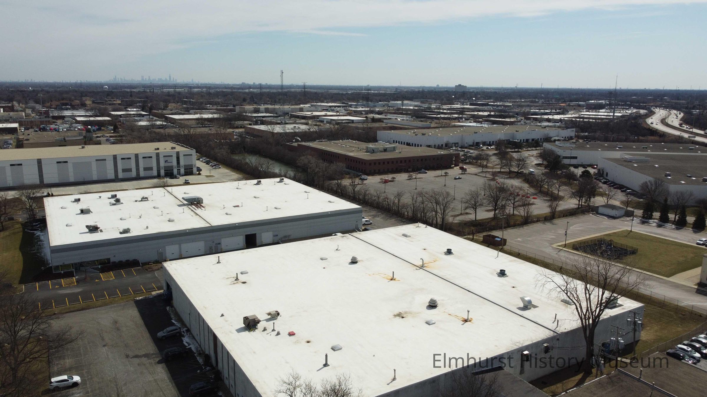 Aerial view of the Elmhurst Industrial Park, looking southeast from Carol Lane. Interstate 290 is at right.Photograph Details