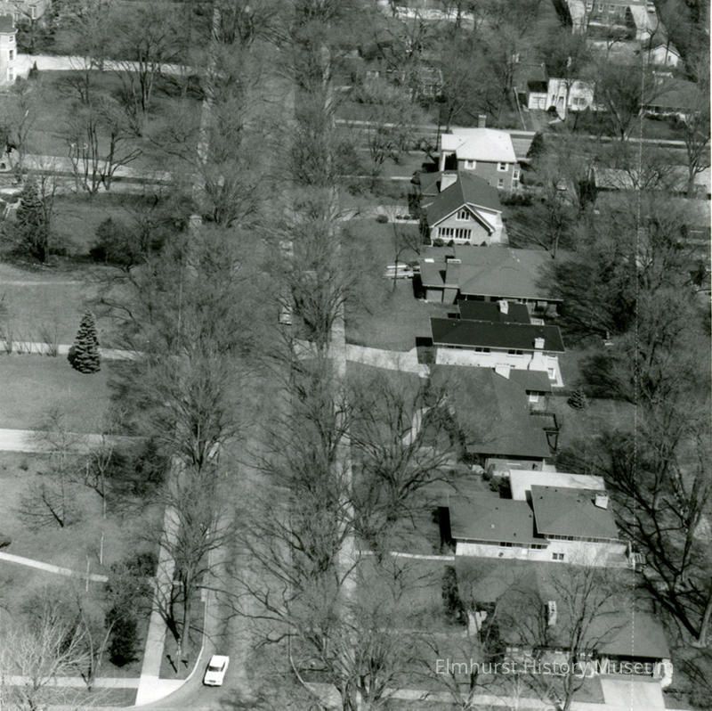 Aerial view of Elmhurst residential street.
