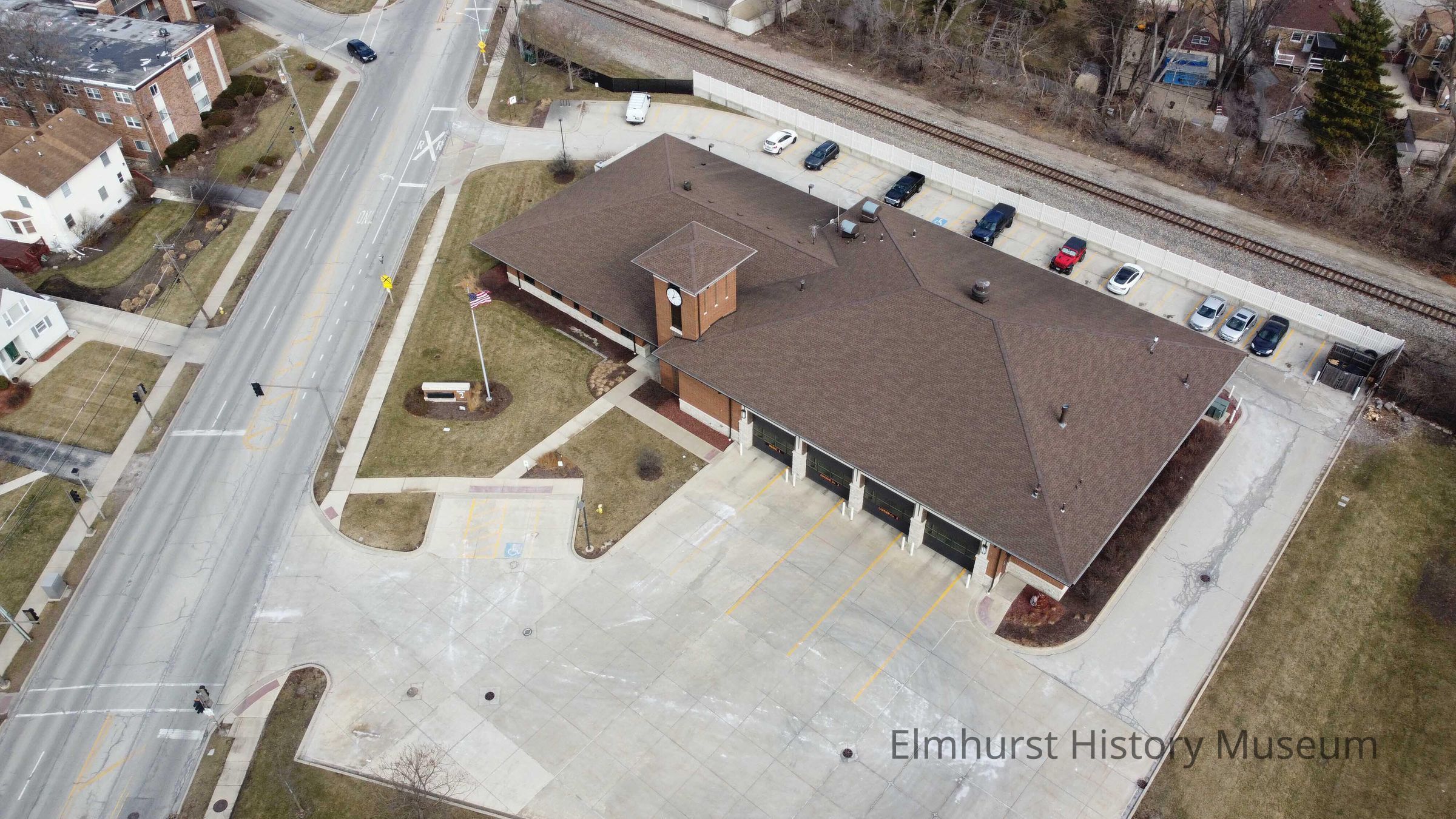 Aerial view of Elmhurst Fire Department Station No. 2 at 605 S. York Street.Photograph Details