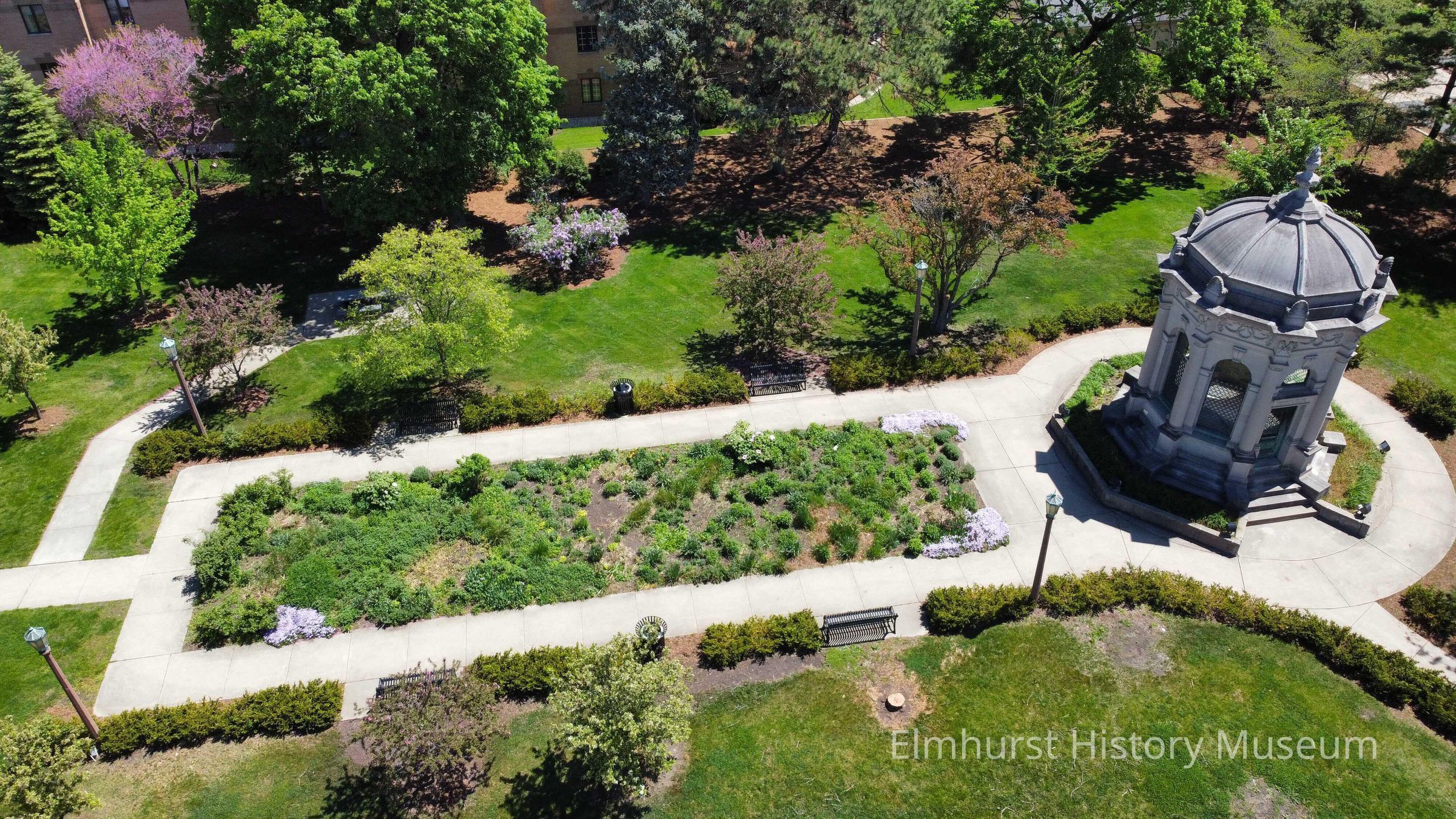 Aerial view of Glos Memorial Park and Glos Mausoleum, 142 E. Park Avenue.Photograph Details