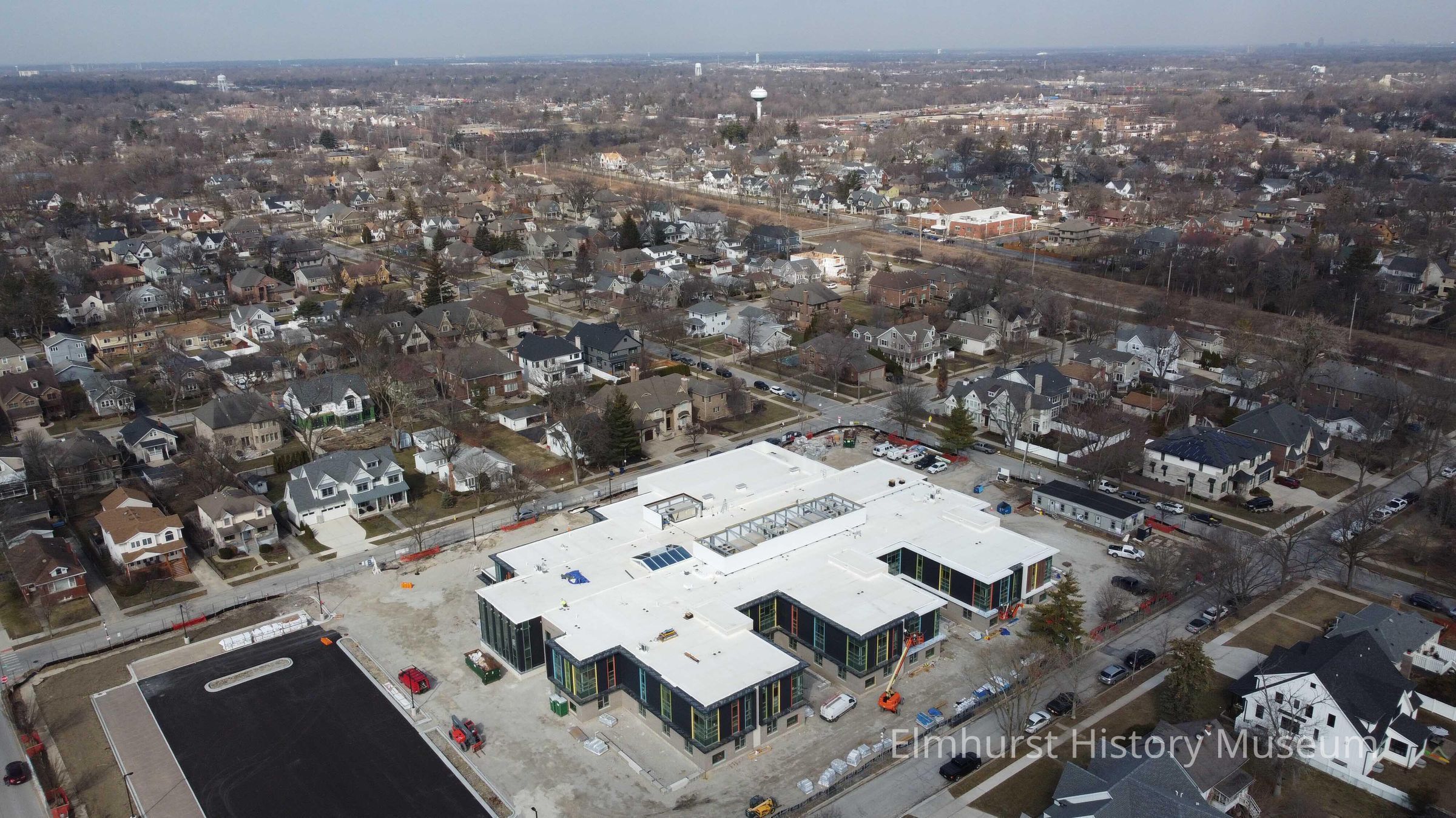 Aerial view of the construction of the new Lincoln Elementary School at 565 Fairfield Avenue, looking northwest.Photograph Details