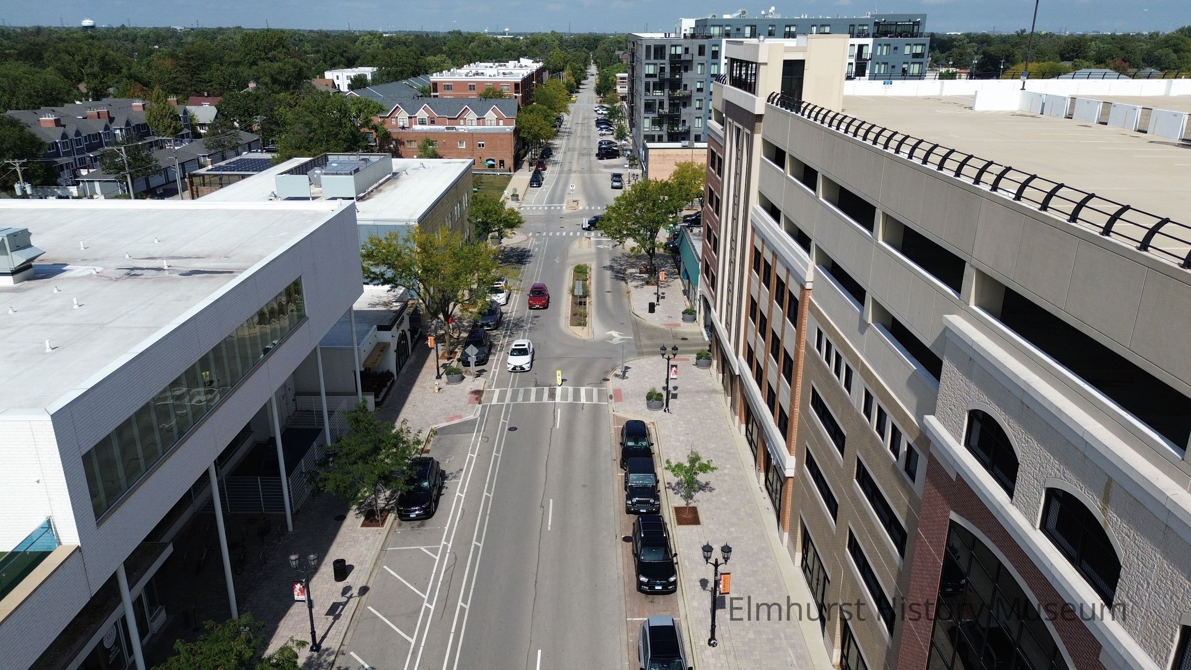 Aerial View of N. Addison Avenue, looking north towards Second Street.Photograph Details