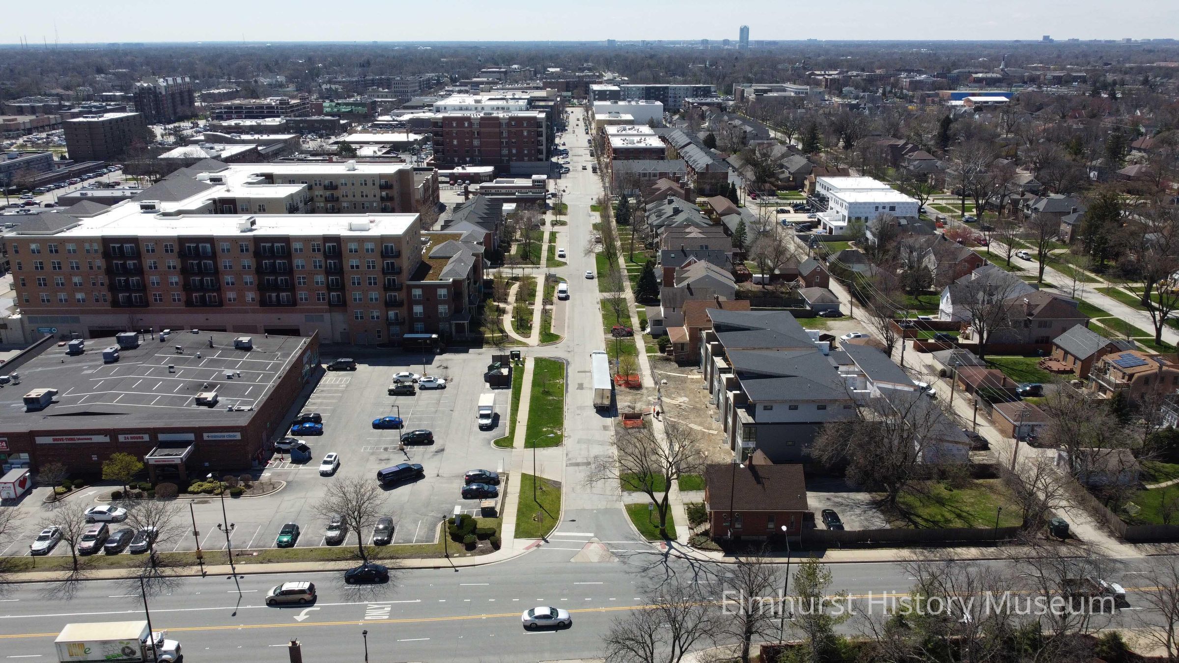 Aerial view of the intersection of N. Addison Avenue and North Avenue, looking south.Photograph Details