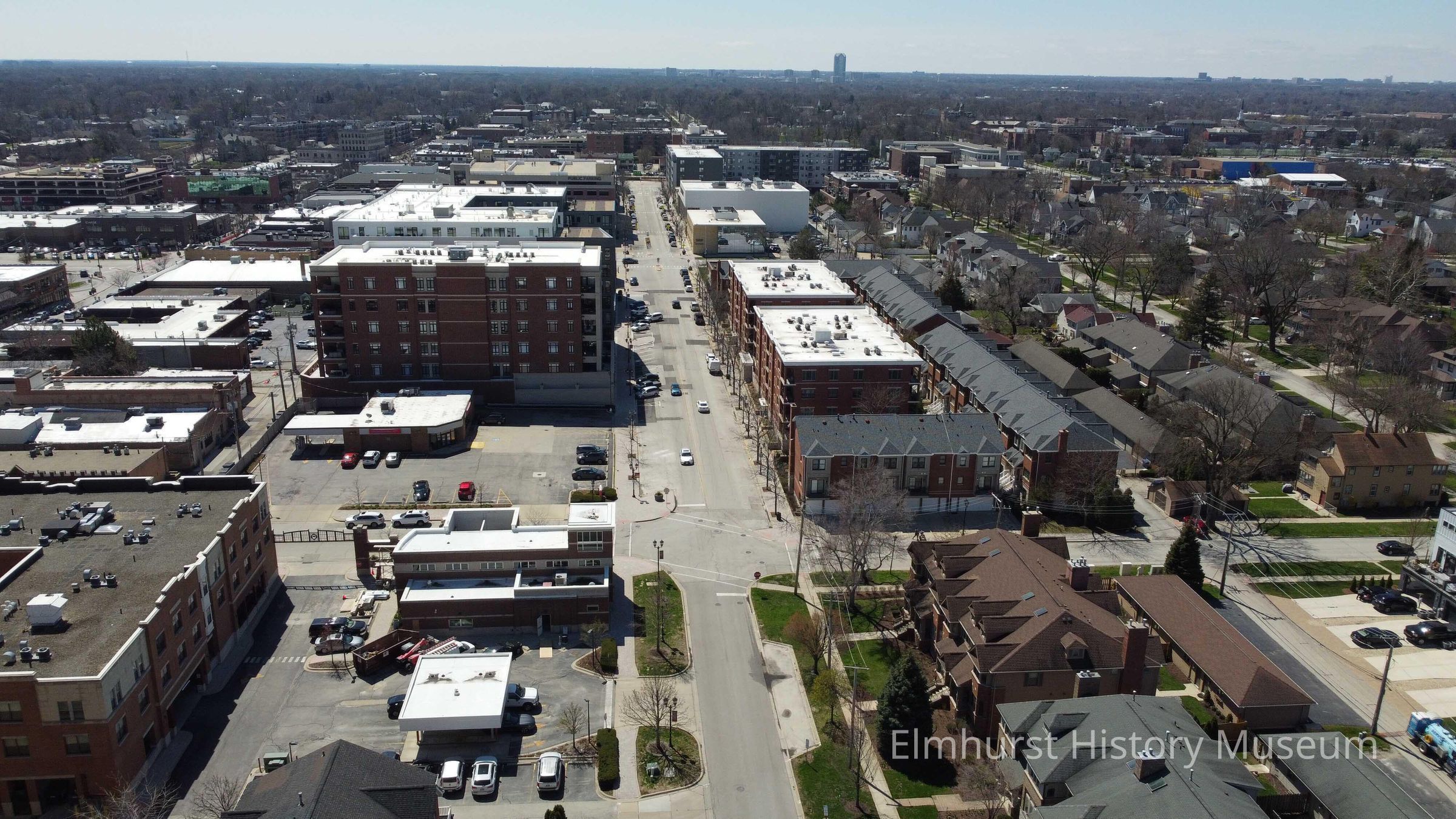 Aerial view of N. Addison Avenue looking south from Third Street.Photograph Details
