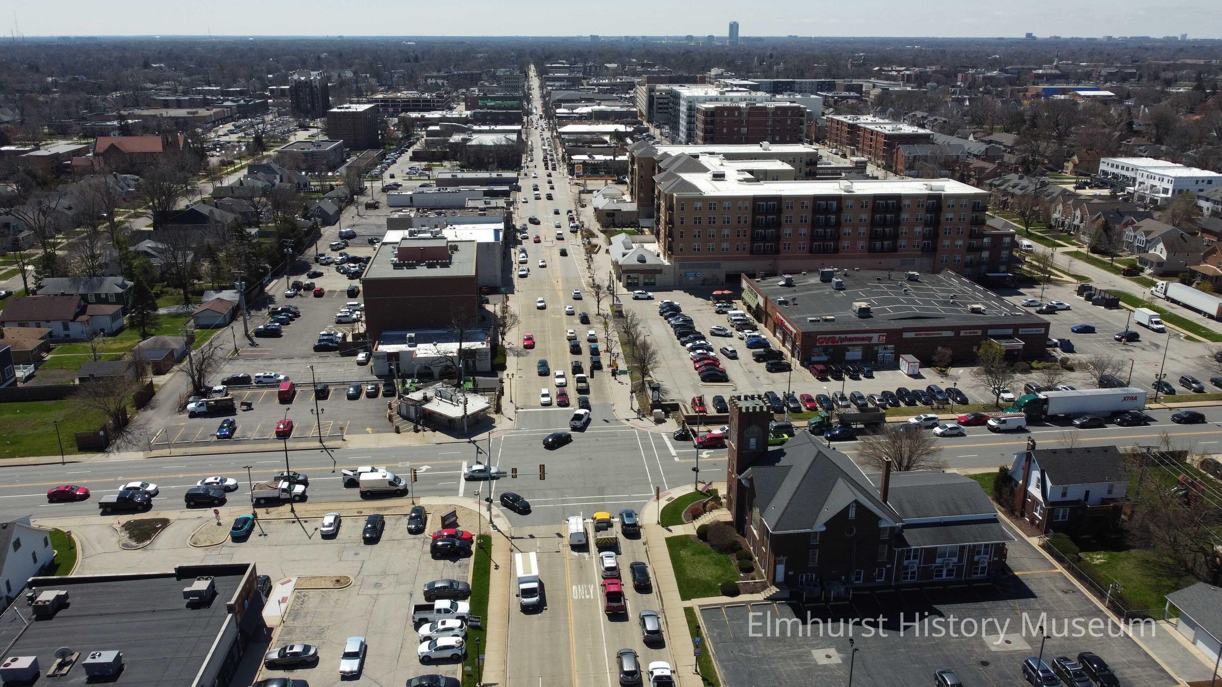 Aerial view of the of N. York Street, looking south from North Avenue.Photograph Details