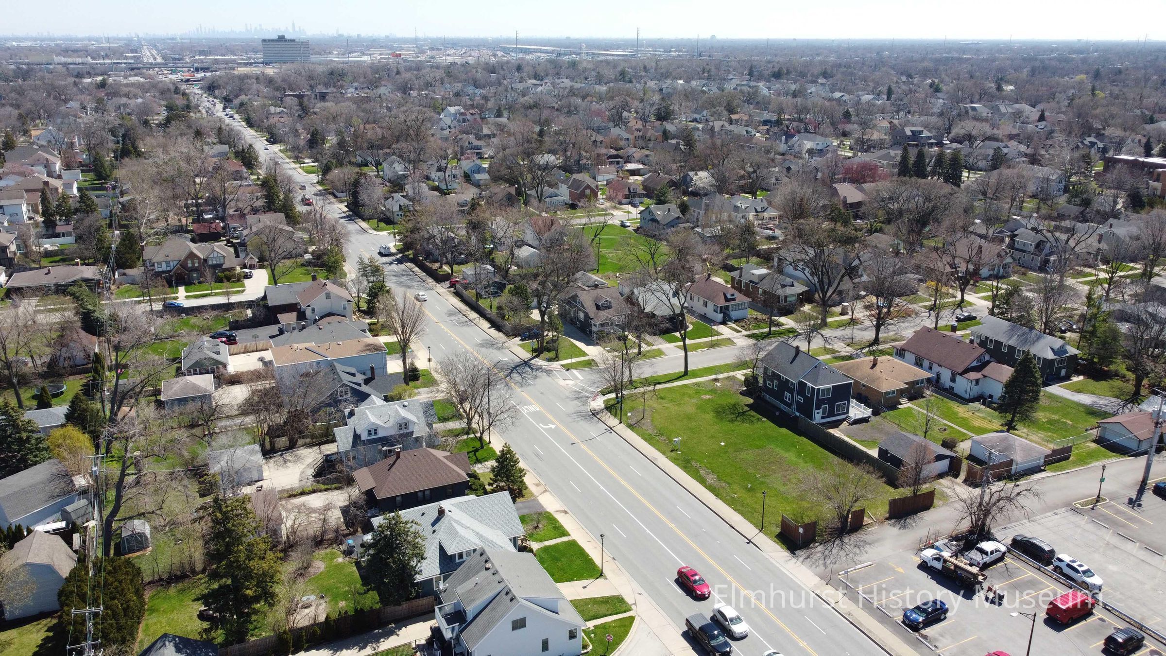 Aerial view of the of North Avenue, looking southeast from N. York Street.Photograph Details