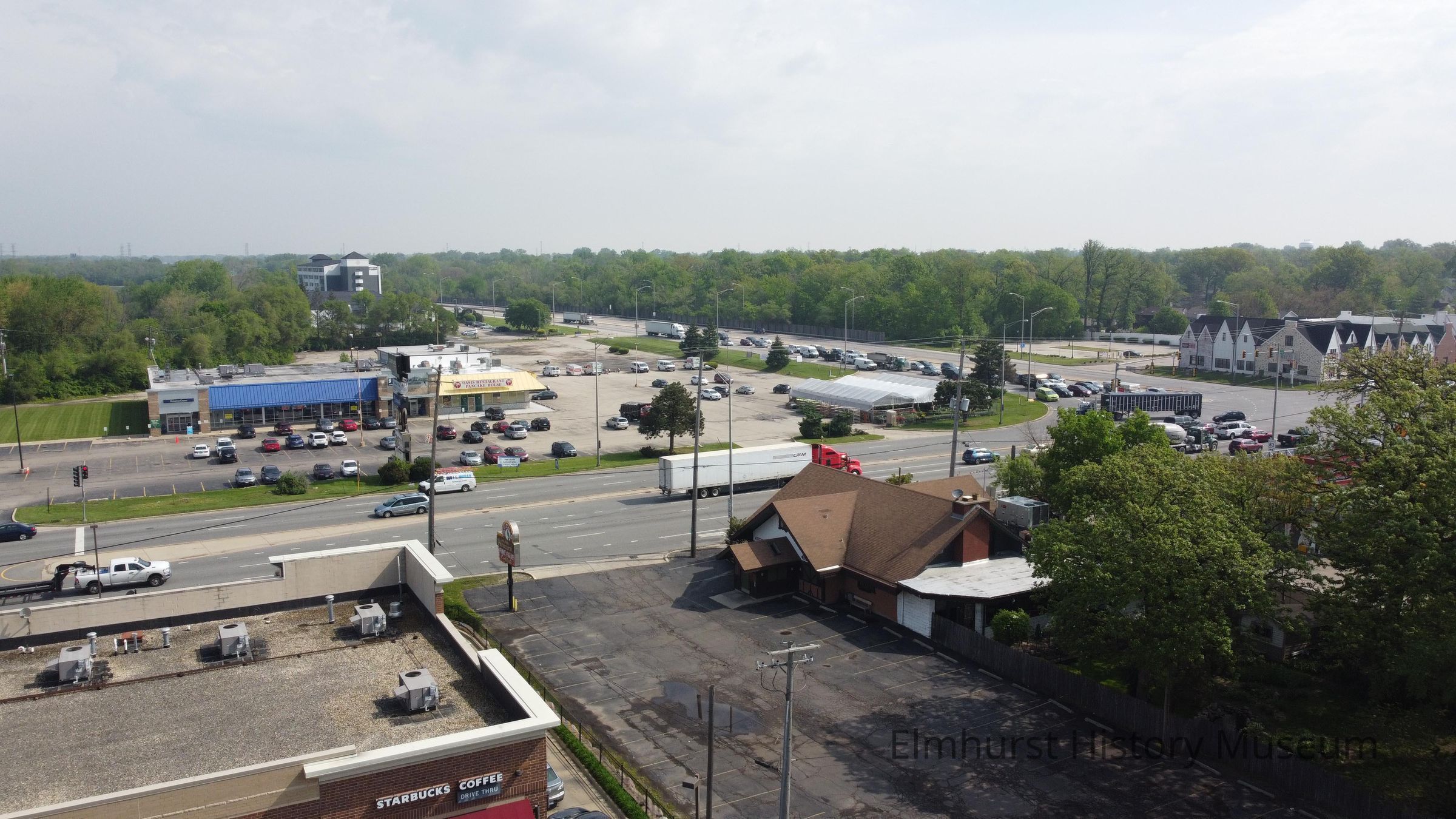 Aerial view of North Avenue, to the east of IL Route 83, looking northeast. Mac's Golden Pheasant restaurant at 668 W. North Avenue is in the foreground.Photograph Details