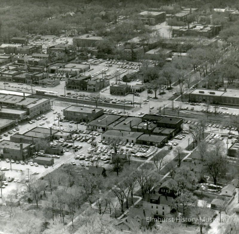 Aerial view of downtown Elmhurst, looking southeast towards the intersection of Park Avenue and Cottage Hill Avenue.Photograph Details