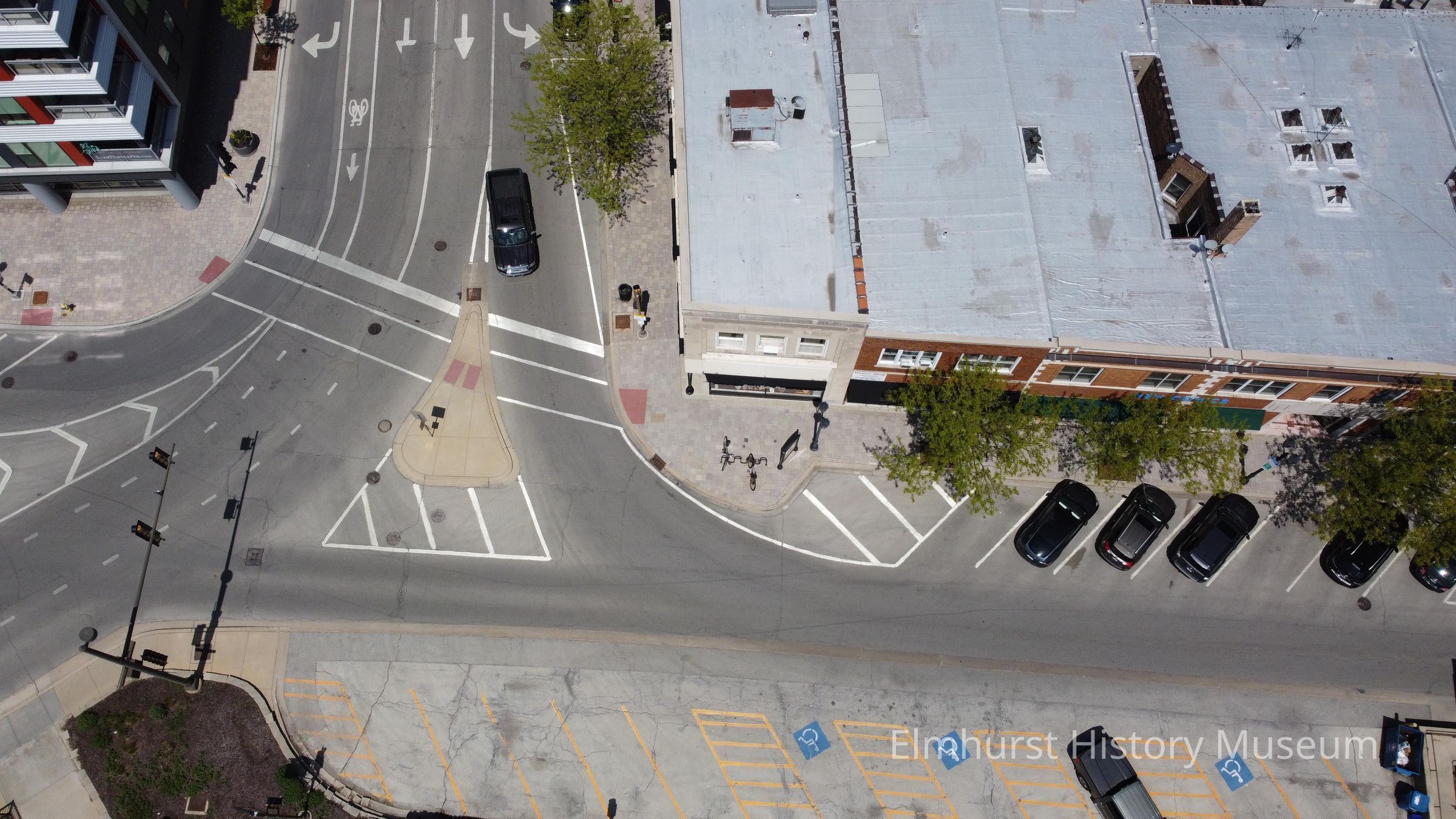 Aerial view of the intersection of E. First Street and N. Addison Avenue.Photograph Details