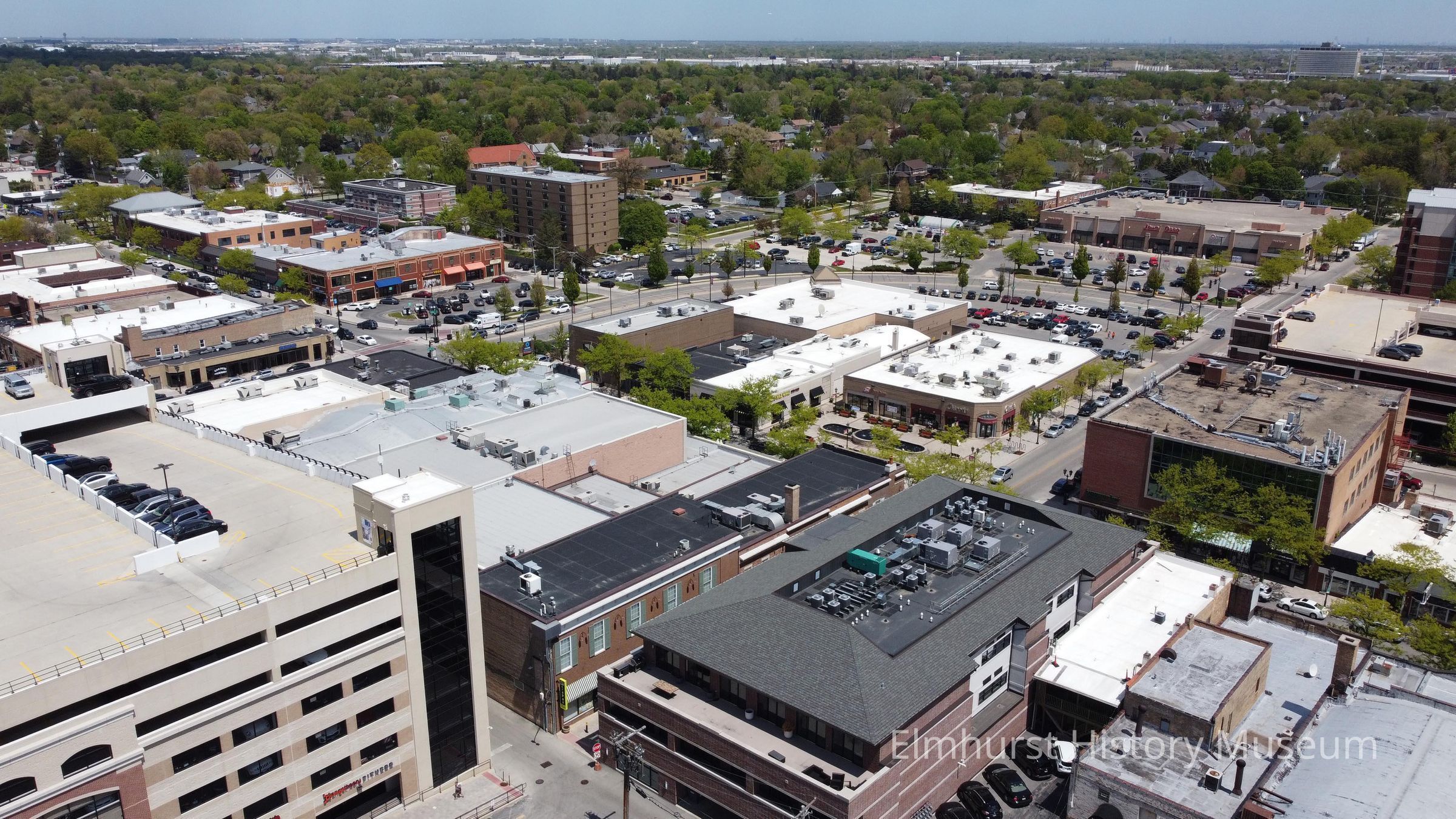 Aerial view of downtown Elmhurst, looking northeast towards City Centre Plaza.Photograph Details