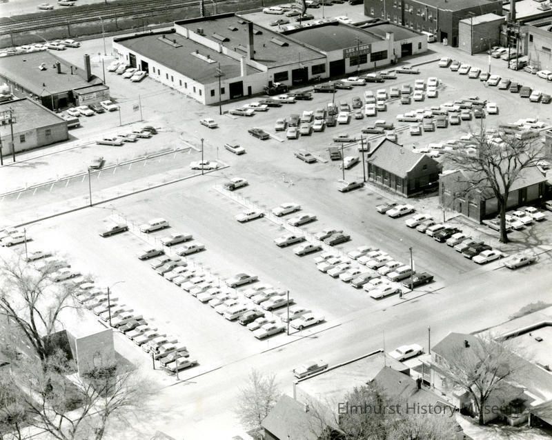 Aerial view of parking lots between First Street and Schiller Avenue, east of York Street.Photograph Details