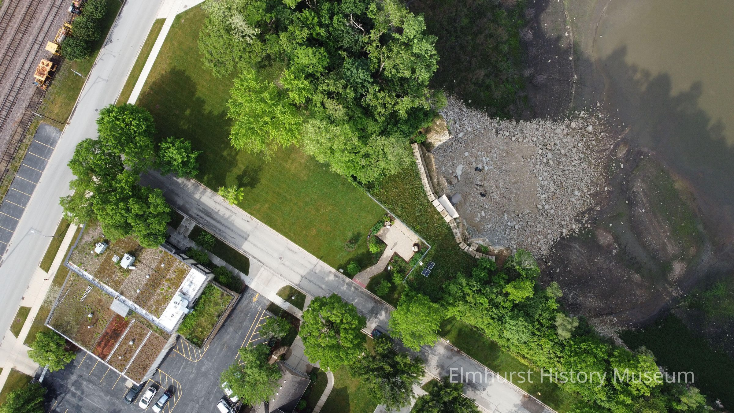 Aerial view of Elmhurst Quarry Overlook platform on Highland Ave, across the street from the Elmhurst Park District headquarters at 375 W. First Street.Photograph Details