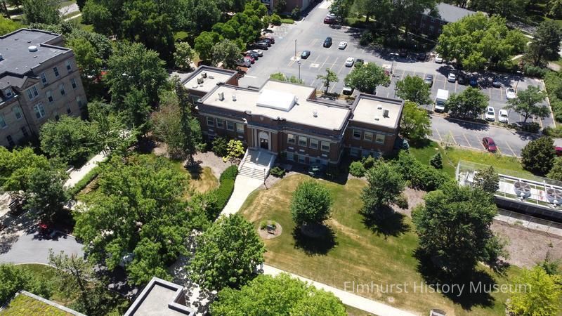 Aerial View of Elmhurst University Campus, focusing on Memorial Hall.Photograph Details