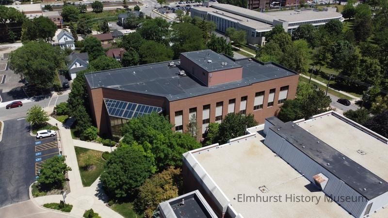 Aerial View of Elmhurst University Campus, focusing on Daniels Hall.Made/Created