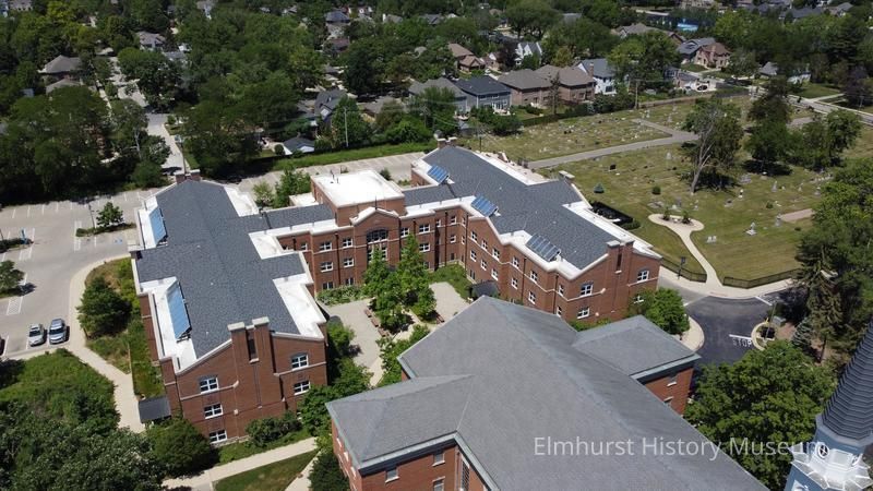 Aerial View of Elmhurst University Campus, focusing on West Hall.Photograph Details