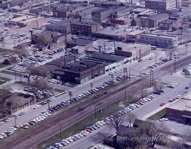 Aerial view of First Street west of Addison Avenue and Park Avenue west of Cottage Hill Avenue, June 1965Inscription/Signature/Marks