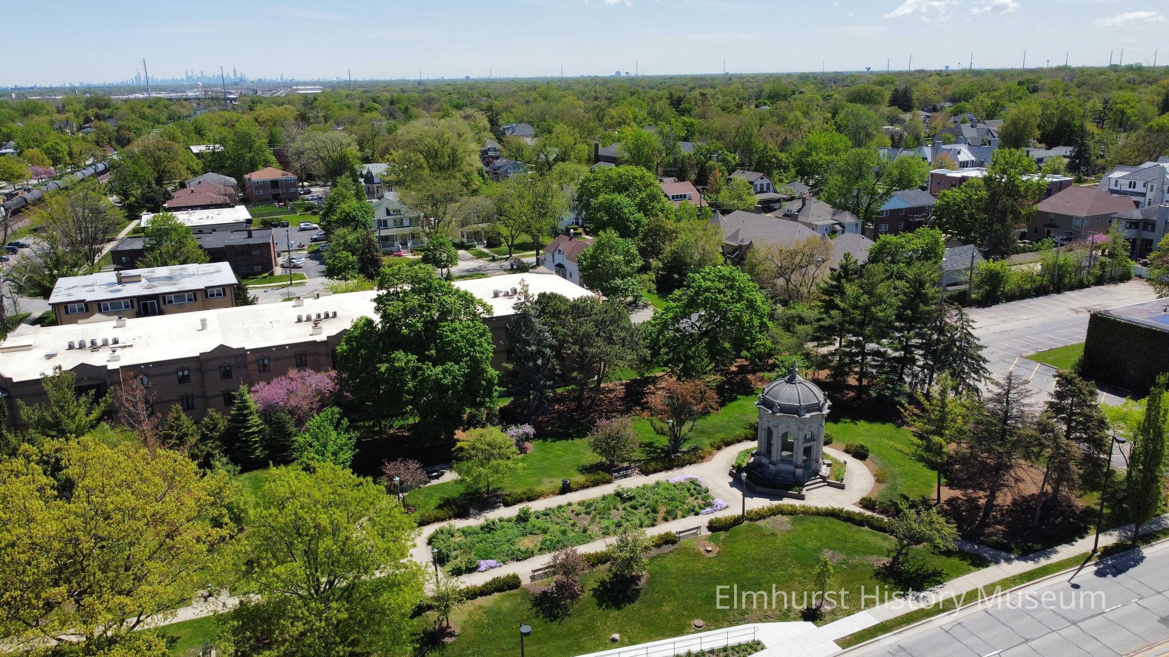 Aerial View of Glos Memorial Park, looking east towards the Chicago skyline.Photograph Details