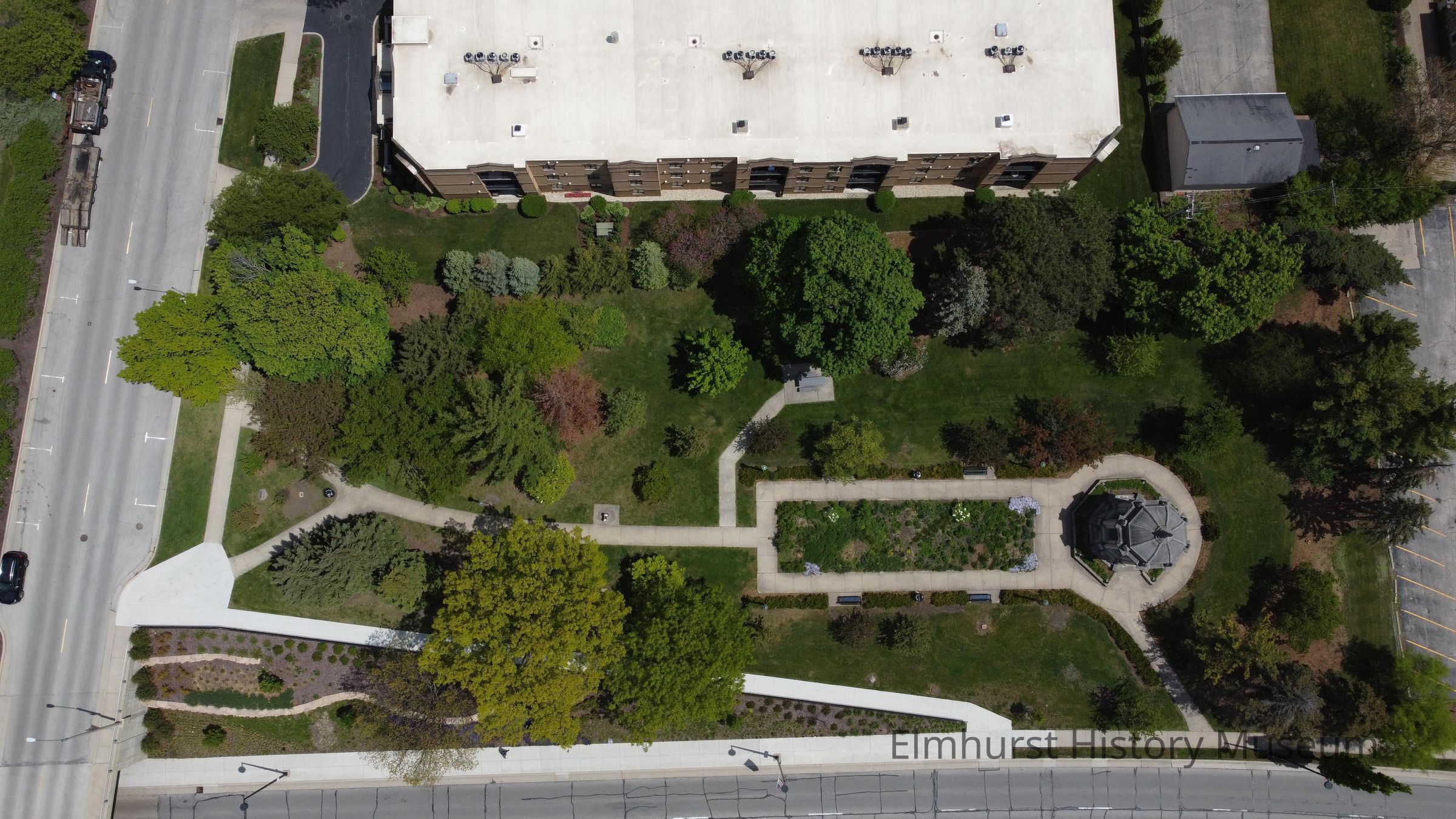 Aerial view of Glos Memorial Park and the Glos Mausoleum.Photograph Details
