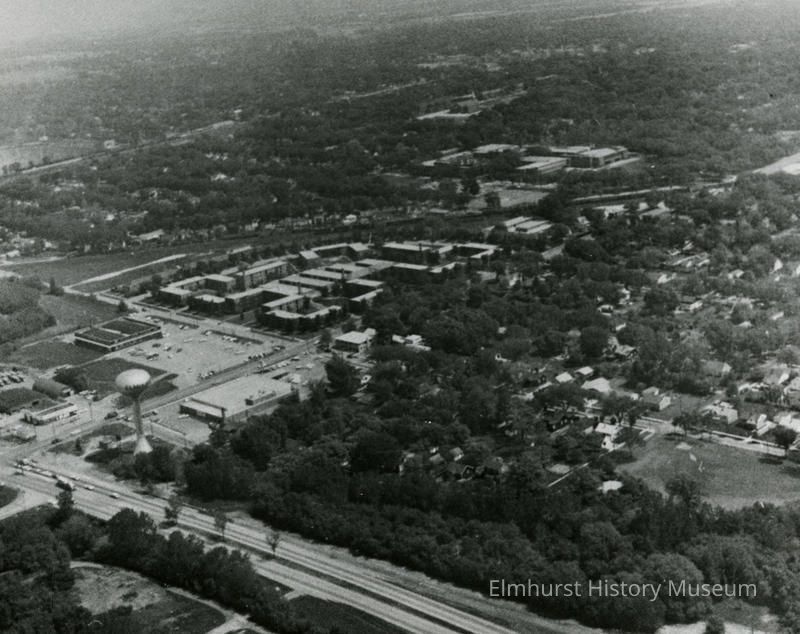 Aerial view of Elmhurst looking northeast with intersection of Route 83 and St. Charles Road at lower left.Made/Created