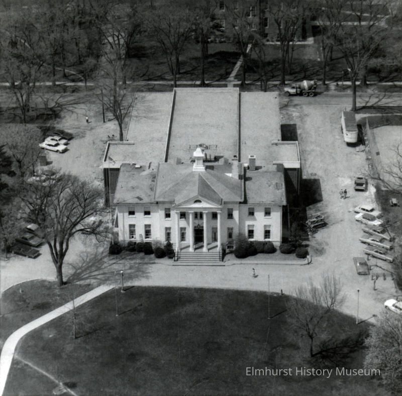 Aerial view of the east façade of the Elmhurst Public Library in the Wilder Mansion.Photograph Details
