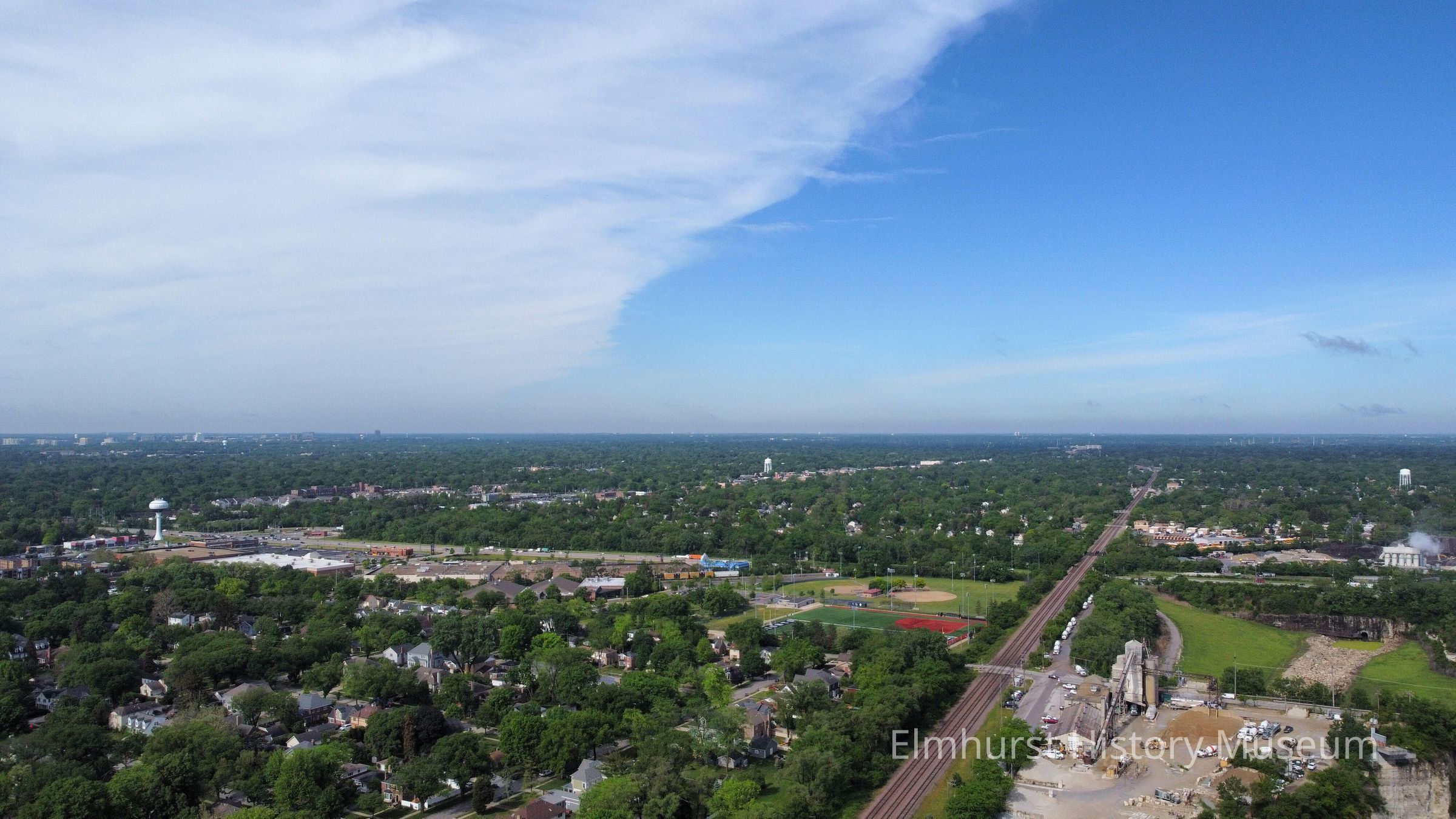 Aerial view of western edge of Elmhurst along Route 83 looking west from the above the quarry.Photograph Details