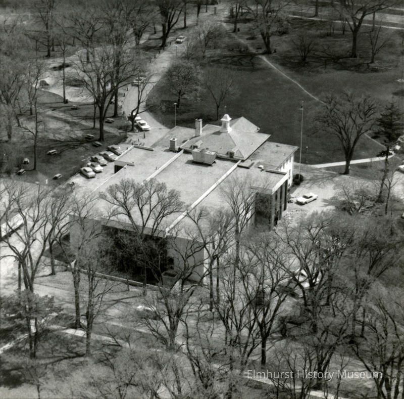 Aerial view of the Elmhurst Public Library in the Wilder Mansion, looking northeast.Photograph Details