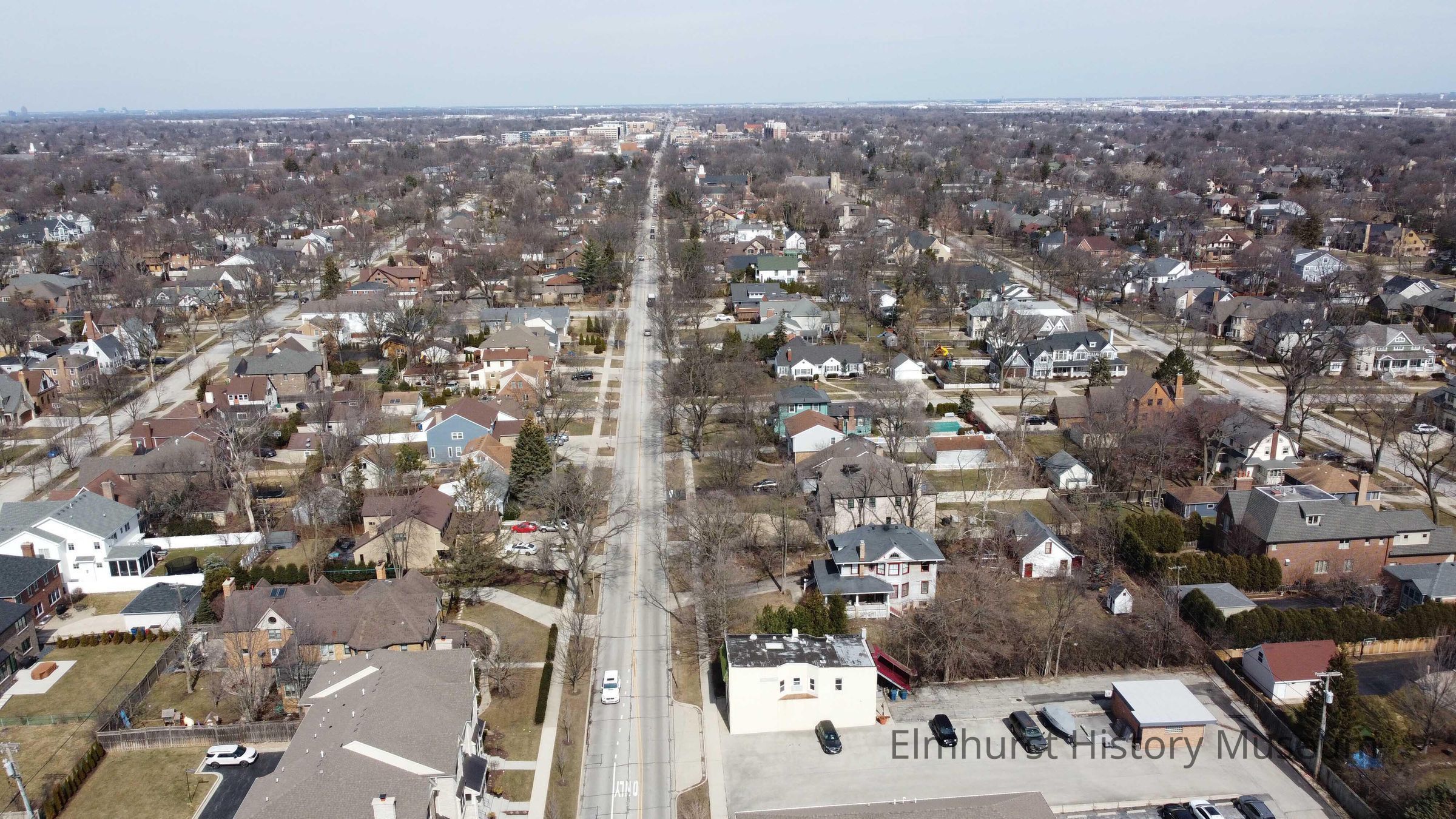 Aerial view of S. York Street looking north from South Street, towards the downtown area.Photograph Details