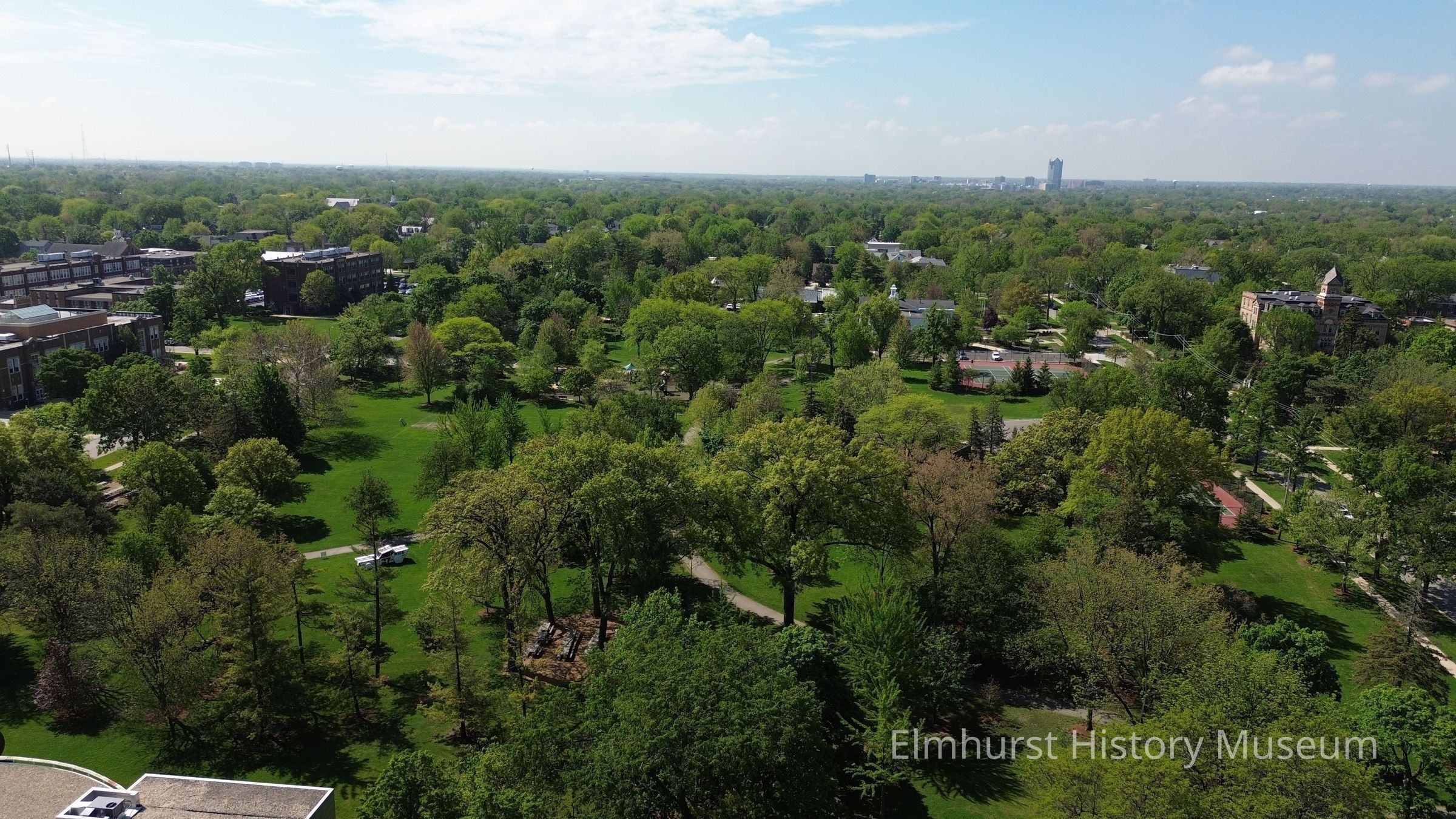 Aerial view of Wilder Park, looking south from above the Elmhurst Public Library.Photograph Details
