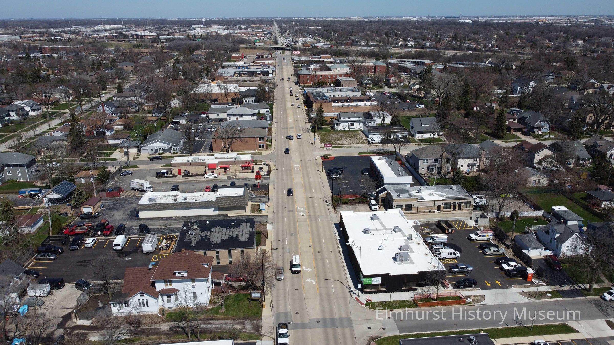 Aerial view of the of N. York Street, looking north from Columbia Avenue.Photograph Details