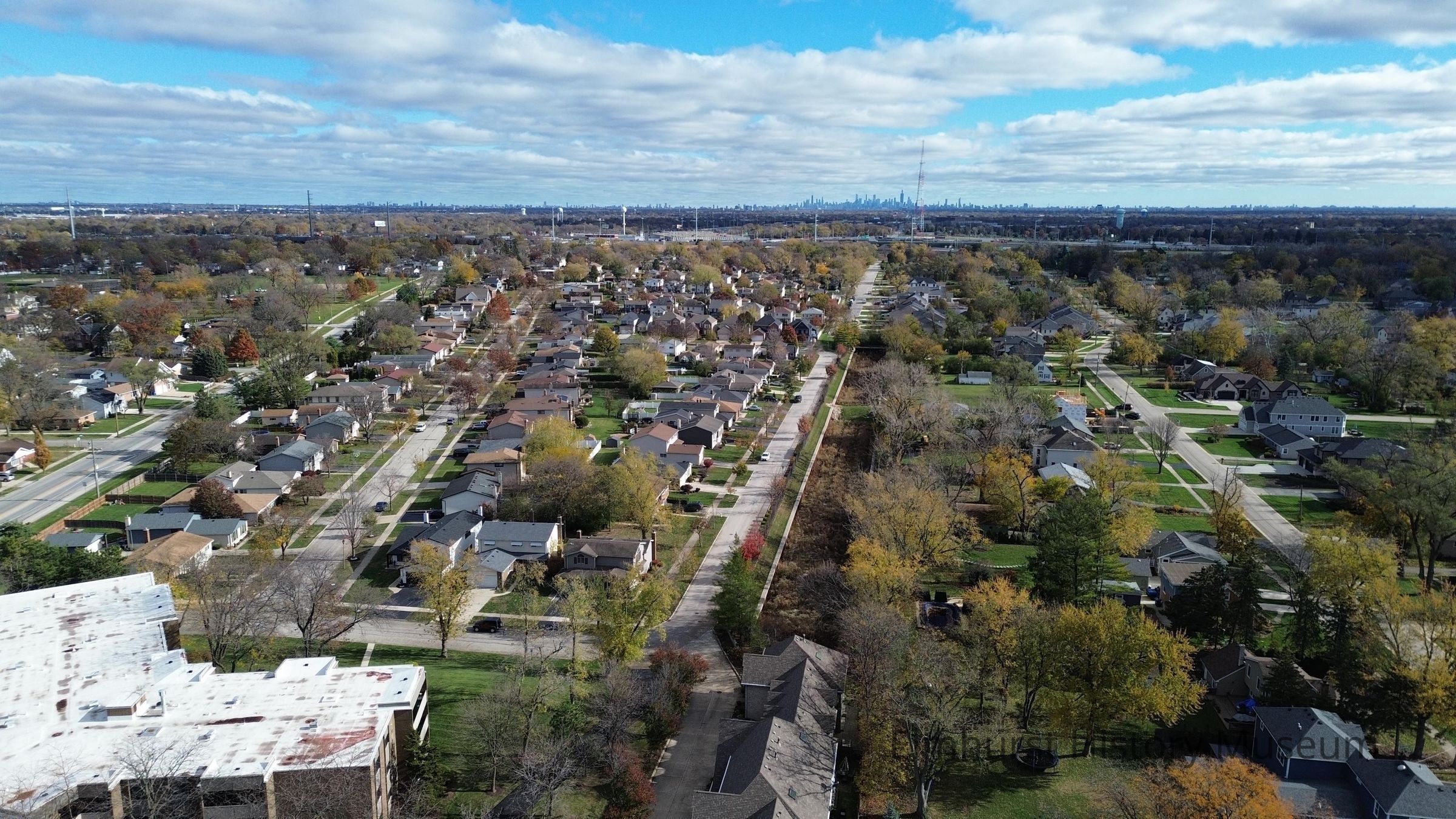 Aerial View of the Yorkfield neighborhood to the south of Butterfield road, looking east from York Street.Photograph Details
