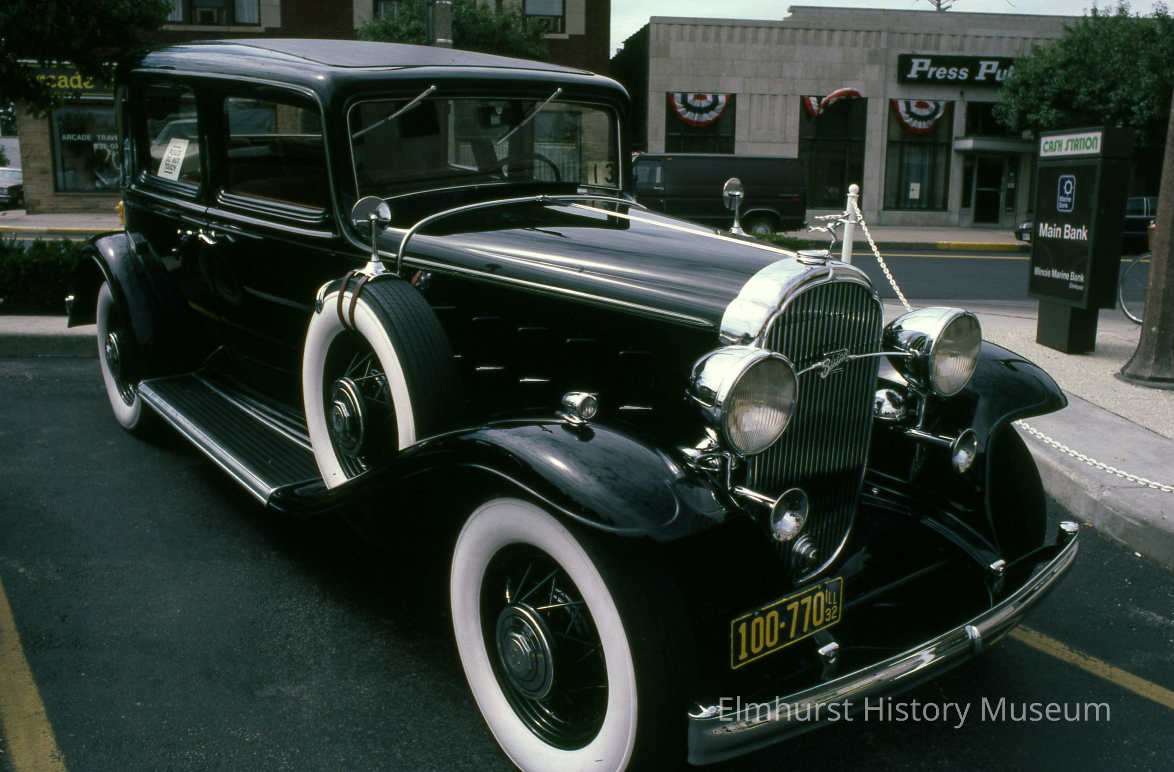 An antique car show on the grounds of Illinois Marine Bank, 105 S. York Street, during a celebration of Elmhurst's Sesquicentennial.Photograph Details