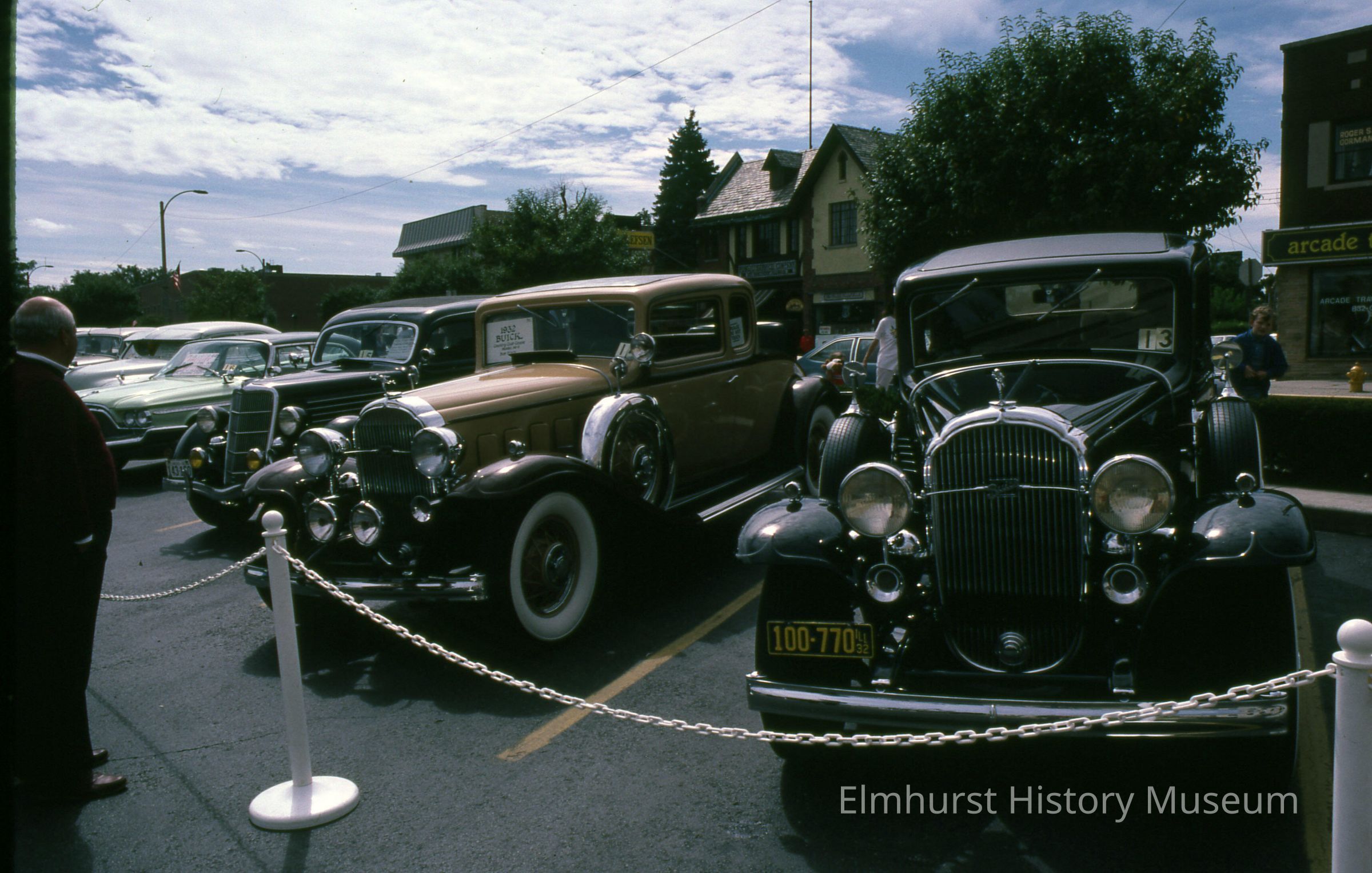 Antique car show on the grounds of Illinois Marine Bank, 105 S. York Street, during a celebration of Elmhurst's Sesquicentennial.Photograph Details