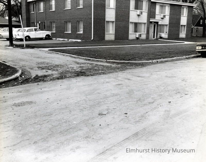 Looking northeast towards apartments on the northwest corner of First Street and Myrtle AvenuePhotograph Details