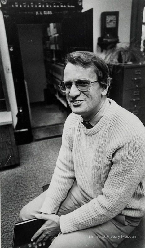 Archie Matley, Chicago Historical Society staff member visiting Elmhurst Historical MuseumPhotograph Details