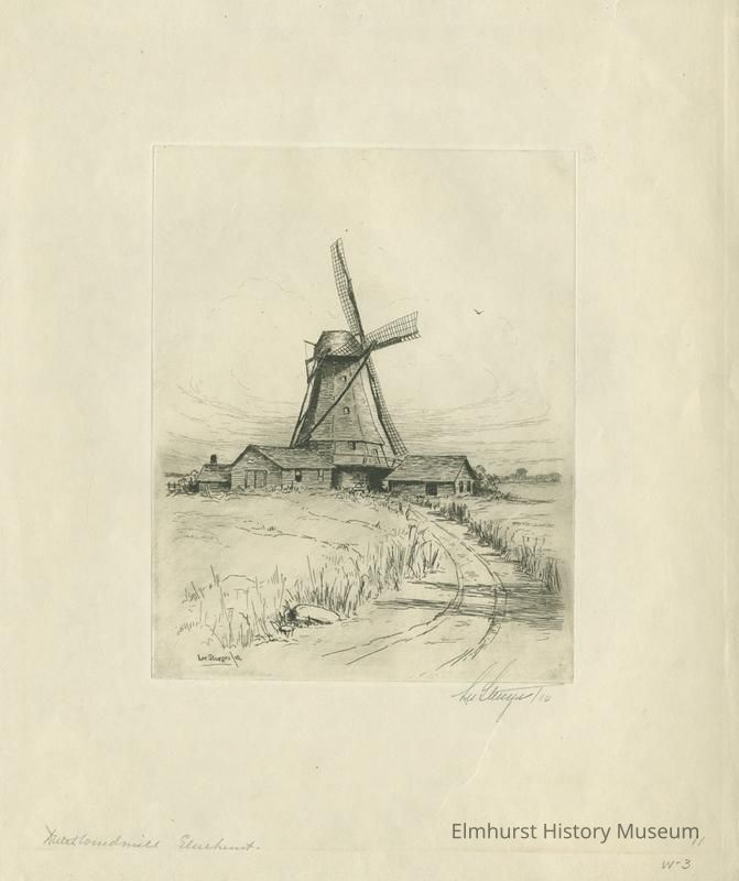 Etching of a windmill. Signed and dated.