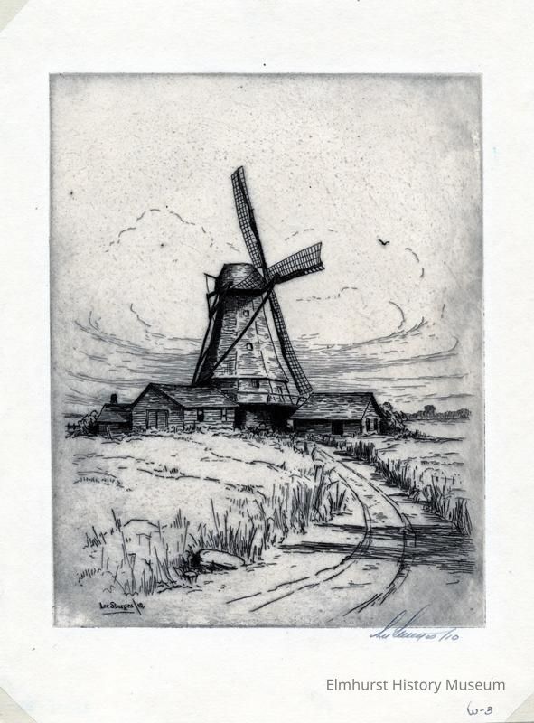 Etching of a windmill. Signed and dated.