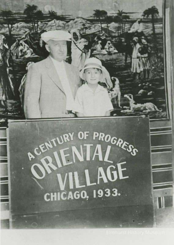 A souvenir photograph of August H. Beckman (1886-1957) and his son Ralph Beckman (1927-1996) taken at the Century of Progress Exposition in Chicago.Photograph Details