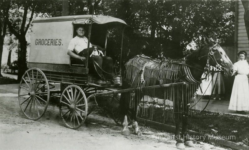 Ed Baethke in the Baethke Delivery Wagon. The store was on the northeast corner of First and York StreetPhotograph Details