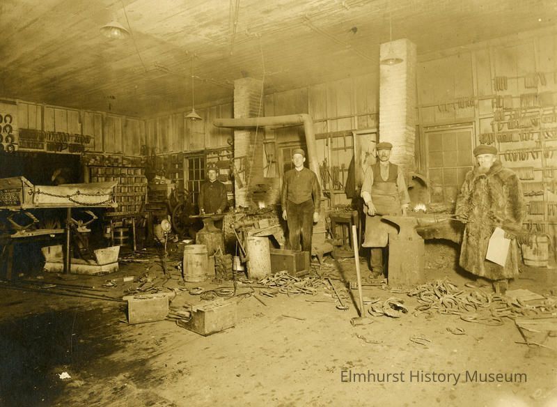 Interior view of Louis Balgemann's Blacksmith Shop at 127 S. York Street.Photograph Details