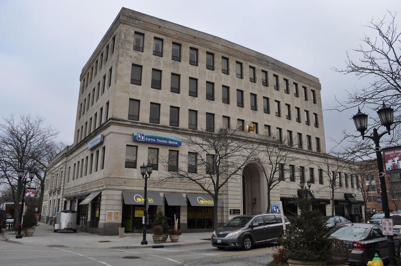 Fifth Third Bank Building at 105 S. York. OMG Restaurant is pictured in the first floor commerical space--it had closed several months earlier in the year.Photograph Details