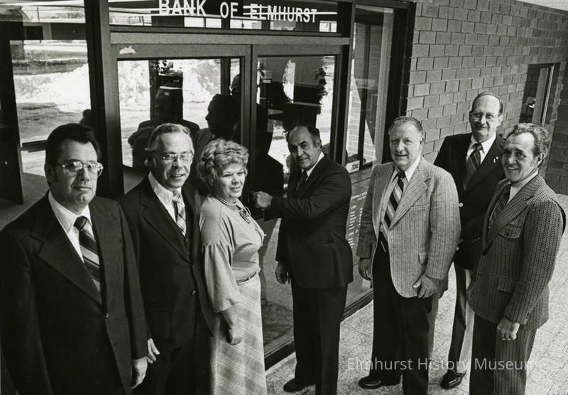 Bank of Elmhurst entrance with group of staff.Photograph Details