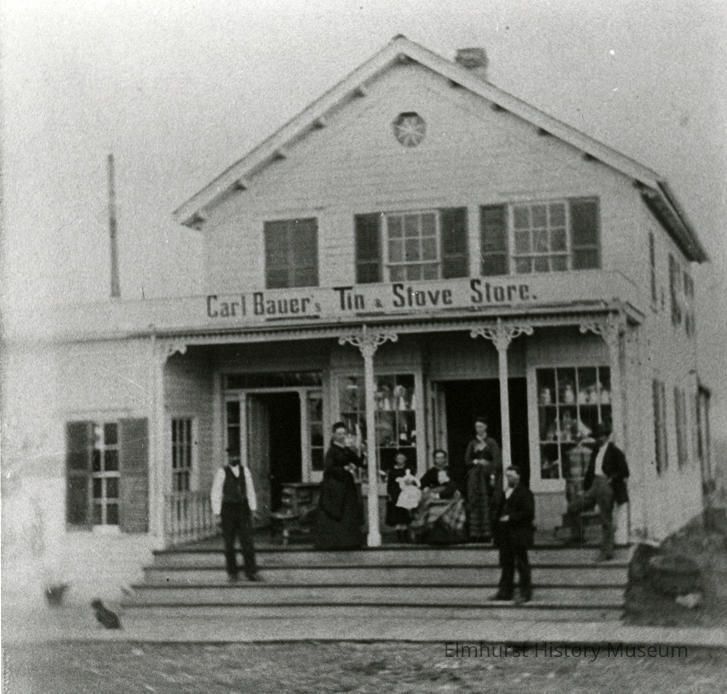 Carl Bauer's Tin and Stove Store at 117 N. York Street, south of Schiller Street.Photograph Details
