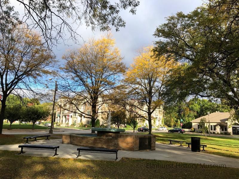Digital photo, Bicentennial Fountain at Wild Meadows Trace park, looking west towards S. York Street.Photograph Details